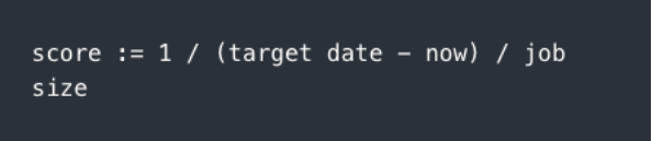 Notice that the time criticality of a job will change over time. Something that needs to be done for a customer event in 6 weeks’ time has low urgency, but it will have higher urgency 2 weeks from now. So will we need to keep re-scoring all jobs in the backlog?