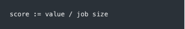 WSJF assigns a score to each job that, originally, is the business value of the job divided by the effort (job size) required to do it. The higher the score, the more the job should be prioritized: