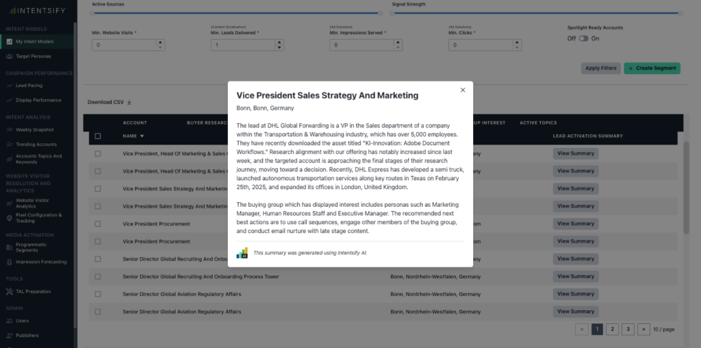 Intentsify’s Lead Activation Summaries provide actionable insights about each lead. These help sellers fine-tune their outreach strategies, which results in better engagement and pipeline generation. In our latest release, we’ve made these summaries even better with enhanced insights that include: