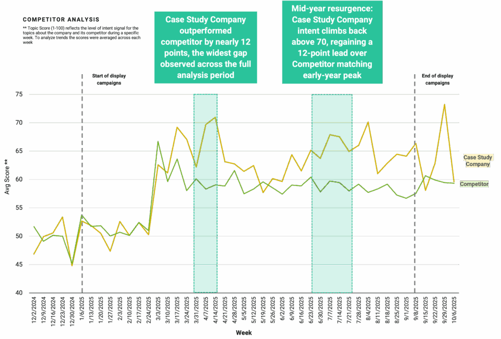 - Sustained Outperformance: Scores remained elevated while competitor’s fluctuated