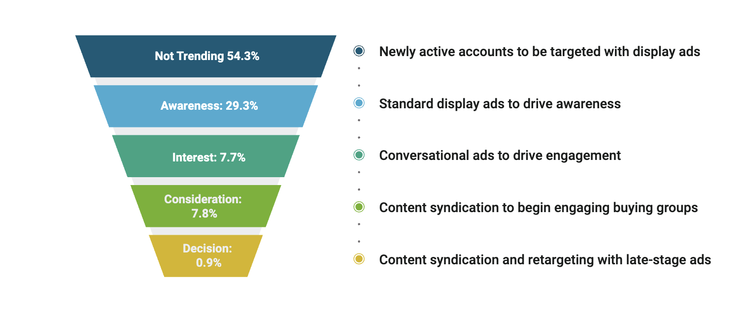 The company’s existing target account list (TAL) needed refinement and a more narrowed focus, and their strategy needed to more effectively guide prospects through the funnel. Without comprehensive, custom intent data, the organization struggled to deliver timely, relevant messaging to buying groups across varying levels of buying readiness.