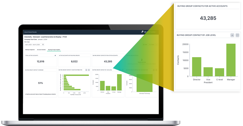 - Effectively engage and convert key buyinggroup members at in-market accounts and accelerate revenue growth at scale by adding on Intentsify’s Buying Group Contact Data.