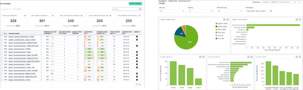 - Gain transparency with comprehensive, granular reporting that goes beyond the typical metrics to help you understand account, buying-group and persona-level engagement, asset performance, intent signal trends, and more.