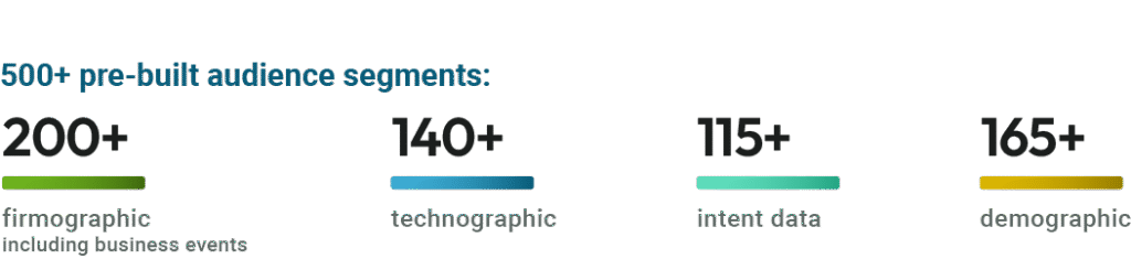 - Browse 500+ Pre-Built Segments Explore audiences across intent signals, personas, company data, technology usage, and business events—all designed specifically for precise B2B targeting.